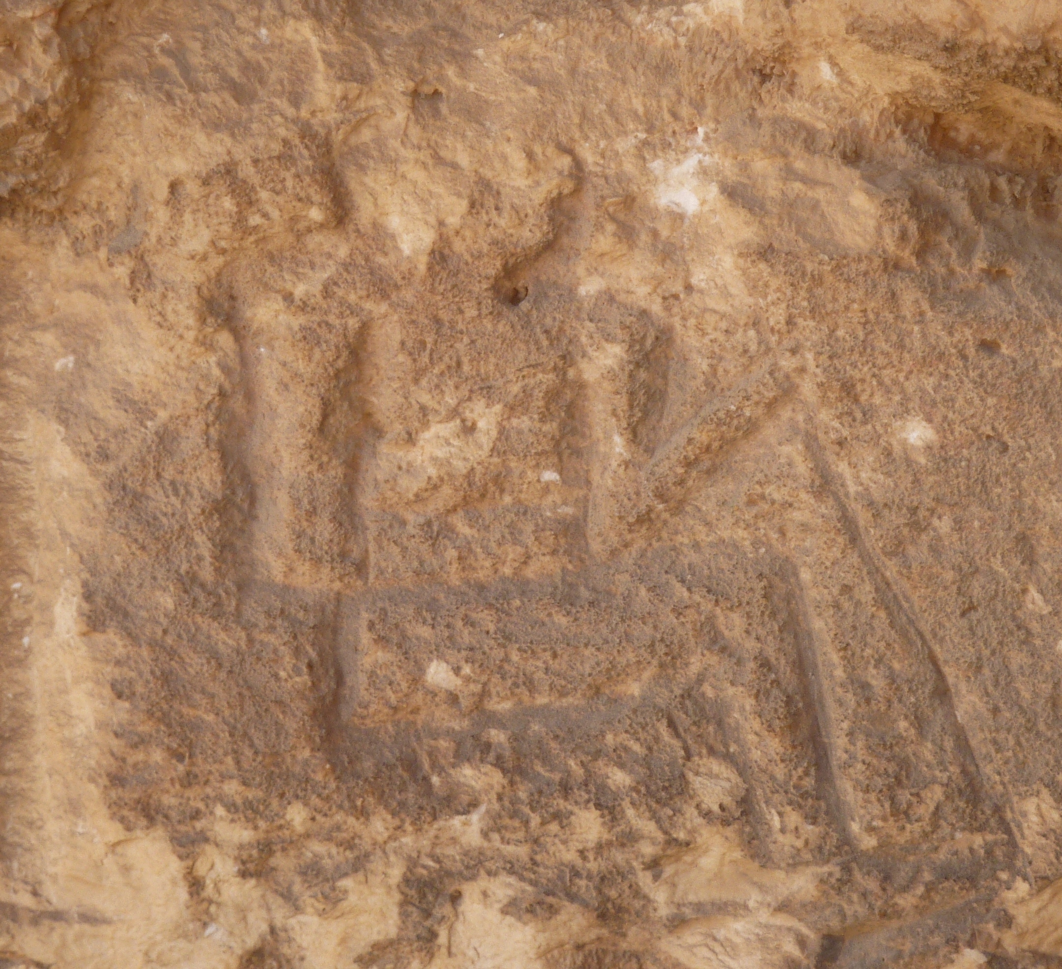 The locations of both the known and new inscriptions and graffiti were recorded in three dimensions, to enable them to be plotted in both plan and elevation and provide a complete record of the written remains within the quarry.  As a result the most heavily surveyed areas are the locations where inscriptions and graffiti are located (Above, plan of the quarry in 2015); the north and south sides of the entrance passage, an area on the north side of the quarry wall known as ‘Cirque Nord’, a larger area of graffiti on the south side of the quarry wall, the ‘Cirque Sud’, and a large boulder on the path from the mouth of the entrance passage to the Cirque Sud. This large boulderP1060425 was particularly interesting. In addition to several carved inscriptions, it had also been decorated with small images of little seated men (Left). Resembling the ‘seated man’ determinative denoting an official in hieroglyphic writing, these images are small but largely devoid of any writing. In some rare cases they are accompanied by a name and/or title.   As a result of these features, this boulder has become known as ‘Little Man Wall’.