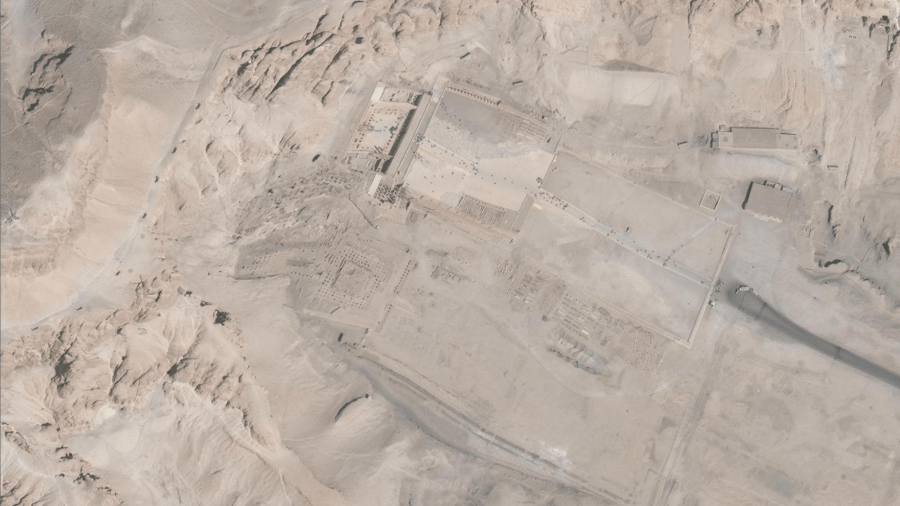 What happens when satellite imagery contains errors? Warping of the satellite imagery has left us with kinky temples at Deir el-Bahri.